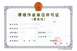 浙江京安爆破工程有限公司(以下簡稱京安爆破)成立于2001年6月,是浙江省品種最全、憑照產(chǎn)能最大的,集研發(fā)、生產(chǎn)、銷售、配送、爆破服務一體化的民爆全產(chǎn)業(yè)鏈的大型民爆國企——浙江新聯(lián)民爆破器材有限公司的下屬單位;是中國工程爆破協(xié)會常務理事單位、浙江省工程爆破協(xié)會副理事長單位;擁有“營業(yè)性爆破作業(yè)……